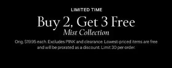 Limited time! Shop in store and enjoy buy 2, get 3 free on mist collection.