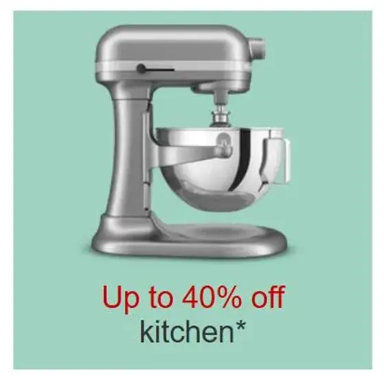 Deals on everything home! Shop in store and get up to 40% off kitchen.